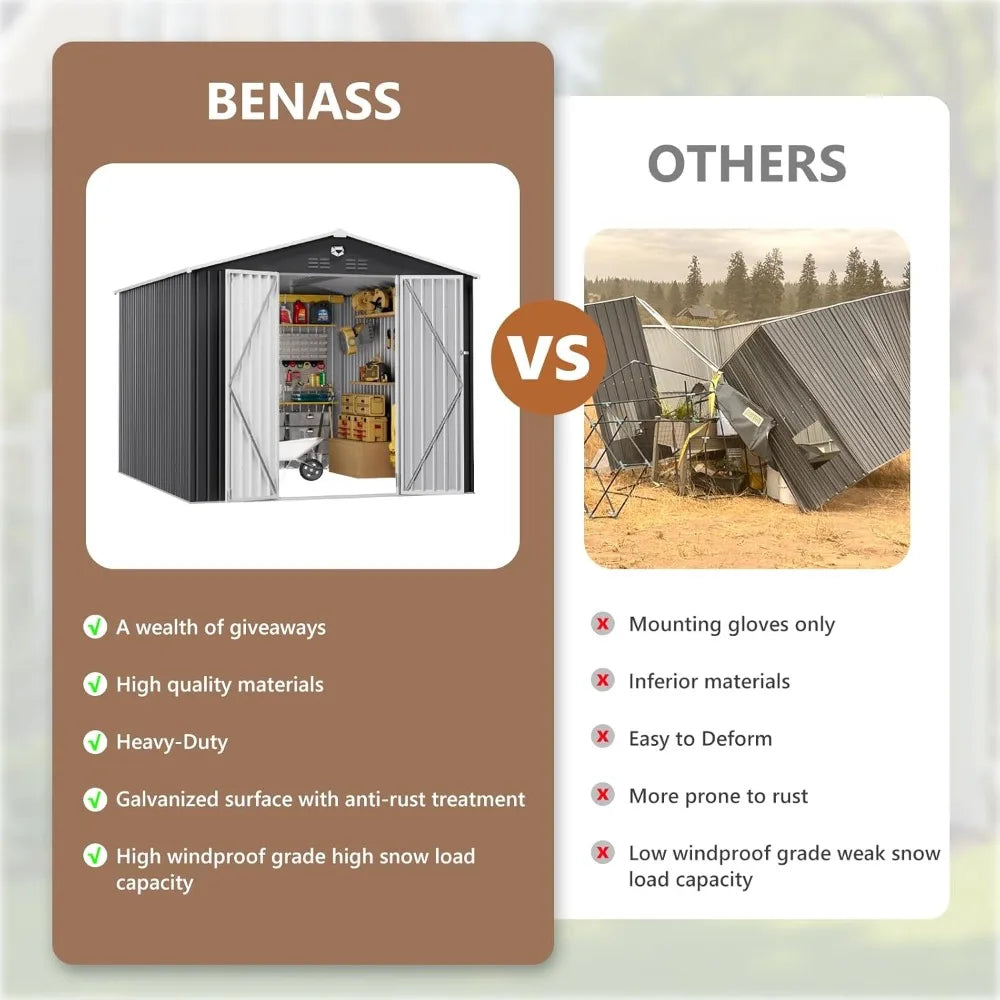 - 【Durable Three-Beam Roof Design】:Our metal storage shed features sturdy galvanized steel construction paired with an enhanced three-beam roof design, ensuring excellent structural strength, long-term durability, and reliable performance in varied weather conditions.