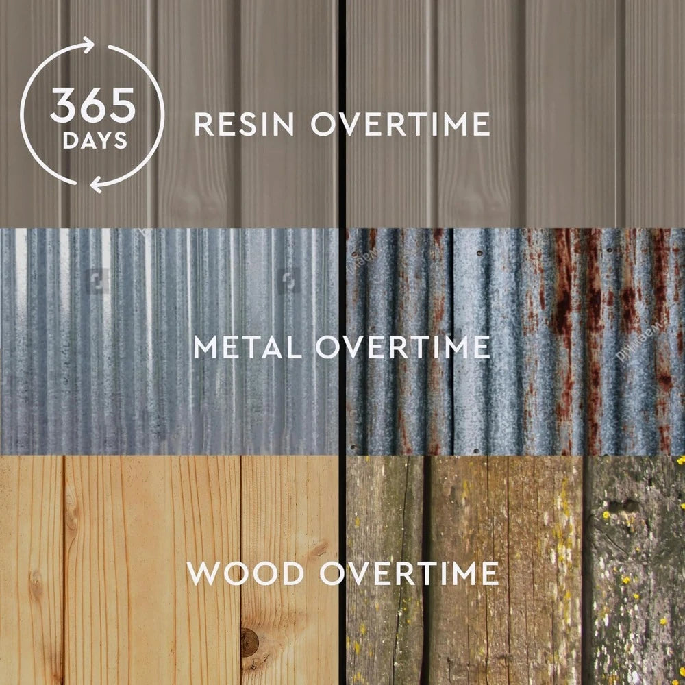 RESIN CONSTRUCTION: Made from polypropylene resin plastic & steel reinforced to ensure durability - will not peel, rot or rust & never needs painting Sidewall Height:77 inch
