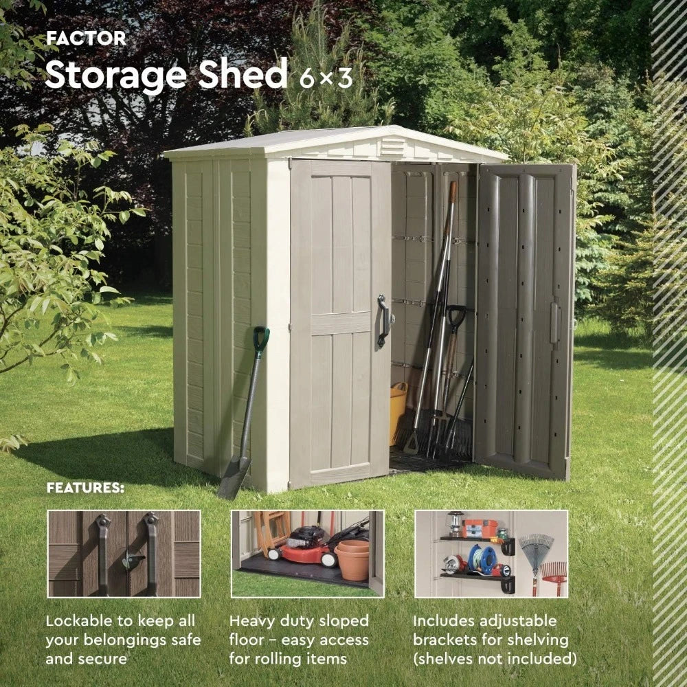 Factor 6x3 Outdoor Storage Shed Kit-Perfect to Store Patio Furniture, Garden Tools Accessories, Beach Chairs and Push Lawn