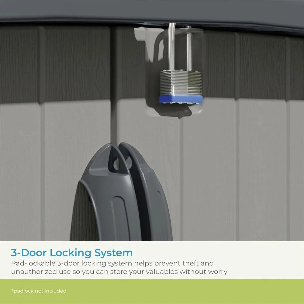 - 3-DOOR LOCKING SYSTEM: Pad-lockable 3-door locking system helps prevent theft and unauthorized use so you can store your valuables without worry (padlock not included)