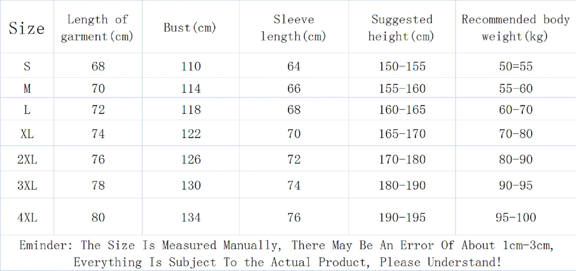 size_info: {"sizeInfoList":[{"length":{"cm":"110","inch":"43.31"},"size":"S","vid":-1},{"length":{"cm":"114","inch":"44.88"},"size":"M","vid":-2},{"length":{"cm":"118","inch":"46.46"},"size":"L","vid":-3},{"length":{"cm":"122","inch":"48.03"},"size":"XL","vid":-4},{"length":{"cm":"126","inch":"49.61"},"size":"XXL","vid":-5},{"length":{"cm":"130","inch":"51.18"},"size":"XXXL","vid":-6},{"length":{"cm":"134","inch":"52.76"},"size":"4XL","vid":-7}]}