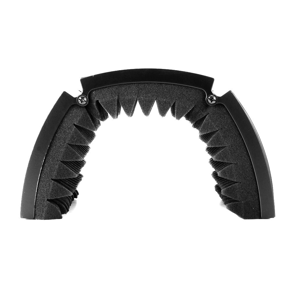 The inner side of the microphone isolation shield is made of absorbing foam insulation that can reduce sound reflection when recording.