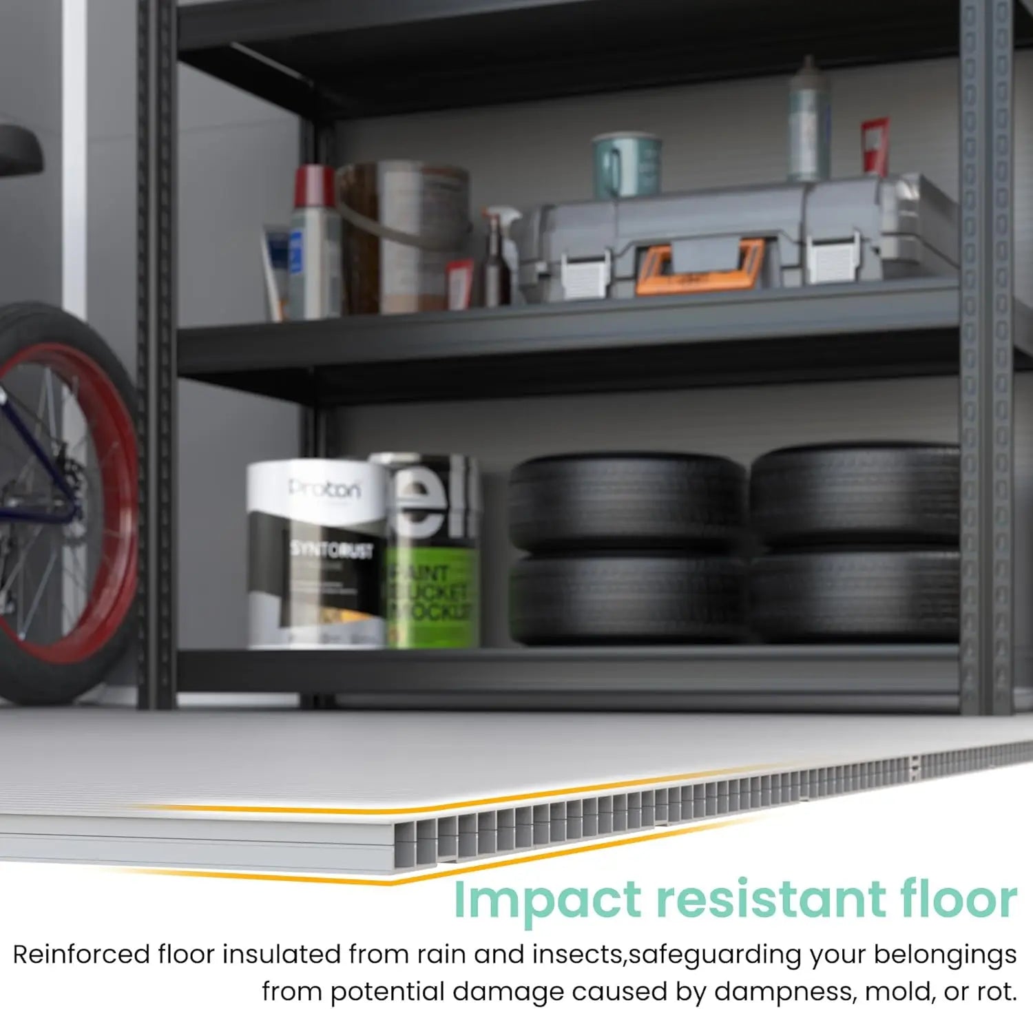 RESIN MATERIAL: Our storage shed is crafted with 12MM premium polypropylene resin plastic, which is recyclable and eco-friendly. Resin shed is corrosion-resistant, waterproof, rustproof and with UV protection for more than 8000 hours, less bending and puncturing, worry-free for use in all weather conditions. It can be used daily for five years without fading