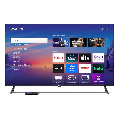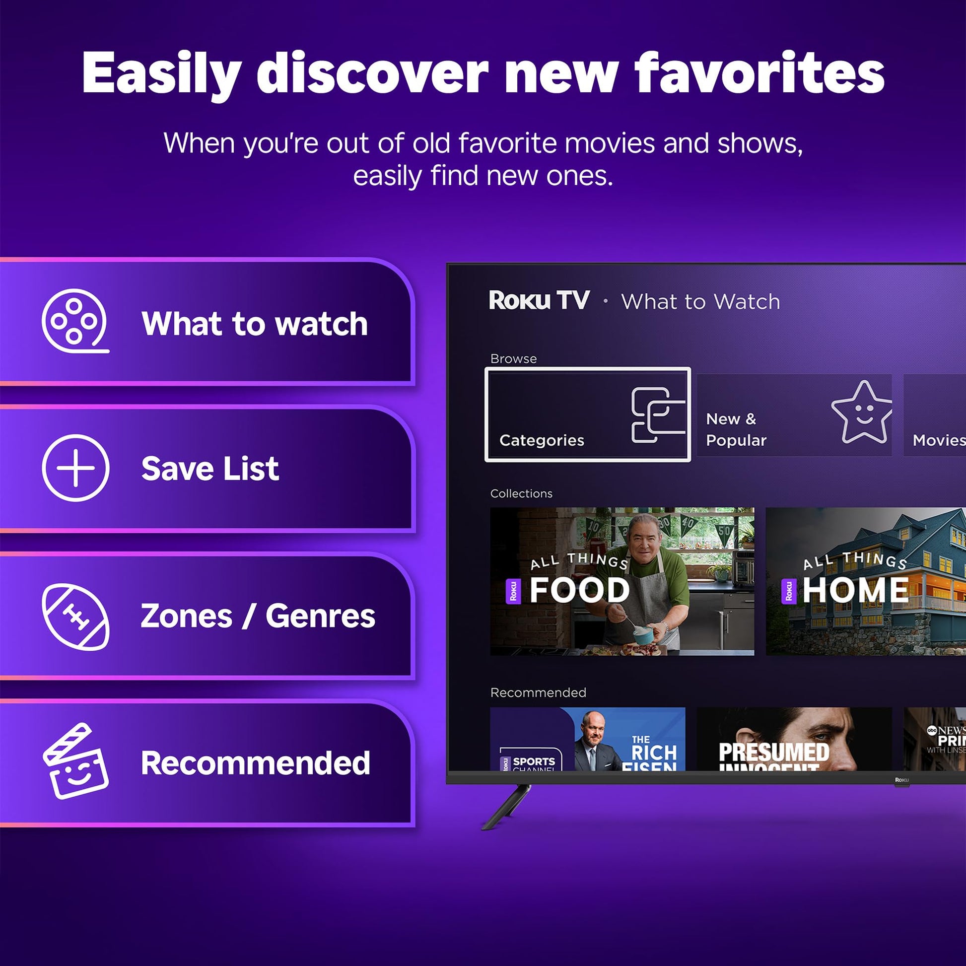A smart TV that makes sense. Roku Select Series 4K TVs are designed to upgrade your entertainment. Enjoy your streaming favorites on this flat screen TV. Catch every word with auto speech clarity or hook up headphones so you don’t wake the house. Watch free live television from the home screen or use the voice remote to find entertainment across thousands of apps. And your couch cushions are no match for the lost remote finder. Smart TV doesn’t have to be complicated. That’s why we’ve designed a line of flat screen smart TVs powered by the delightfully simple Roku experience.