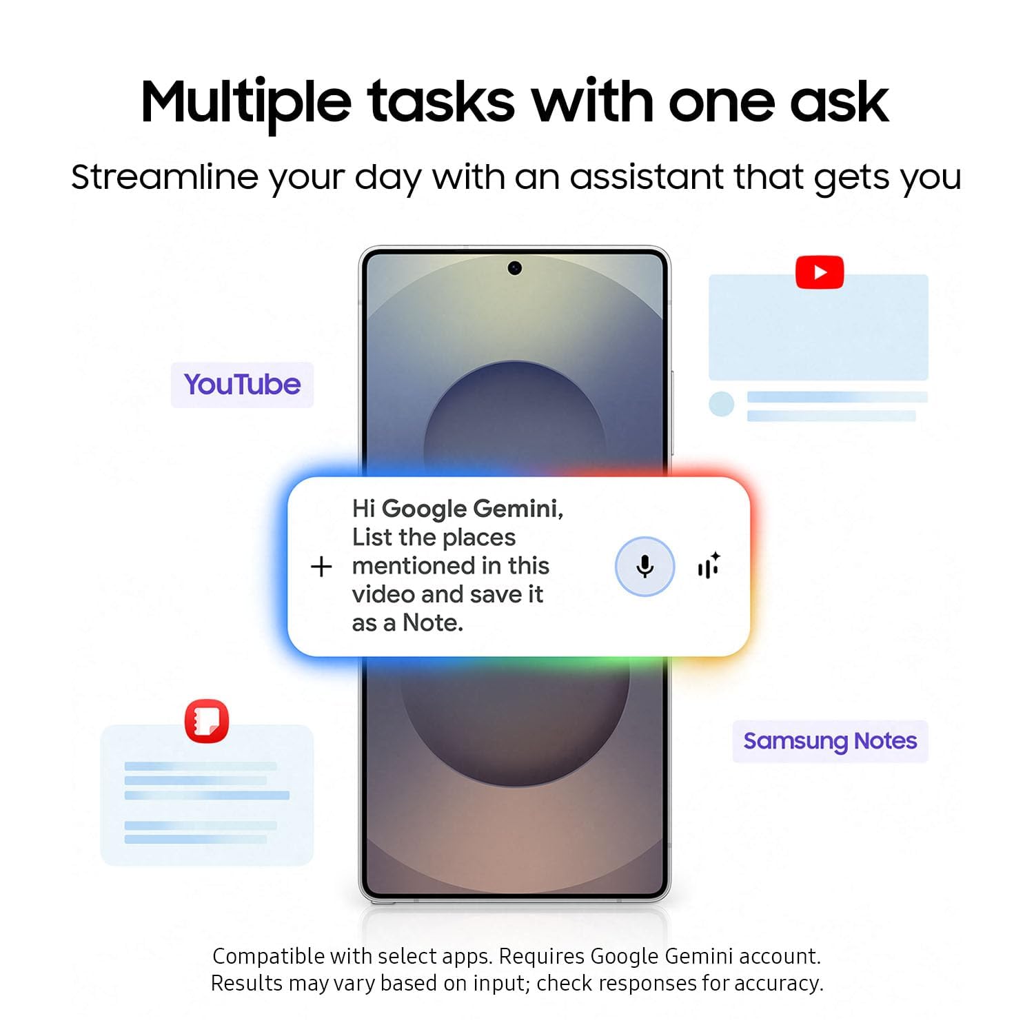 - VIRTUAL ASSISTANT, PERSONAL HELP: Streamline your day with an assistant that gets you. Ask it to Google search for a pet-friendly vegan restaurant nearby and text it to your friend — your Galaxy S25 Edge handles multiple tasks with a single ask.²