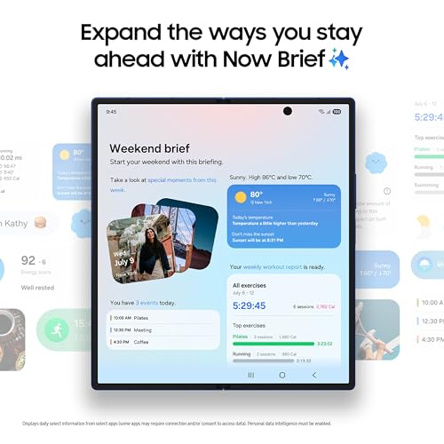 - EXPAND THE WAYS YOU STAY AHEAD: With Galaxy Z Fold7, you get to decide how to stay ahead. See your daily briefings at a glance on the cover screen, or unfold your phone for an expansive view.